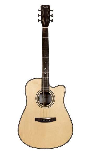 Акустическая гитара Prima MAG218С изготавливается из отборных материалов, обеспечивающих чистое звучание с богатыми обертонами. Классическое сочетание верхней деки из массива ситхинской ели с нижней декой и обечайкой из массива палисандра южноамериканской породы сантос, являющейся отличной альтернативой краснокнижному рио, обеспечивает идеально сбалансированный тембр, с глубокими бархатными басами. Сочленение корпуса с грифом в районе 14 лада в сочетании с вырезом-катавэем позволяет максимально легко и без препятствий добираться до высоких нот, а изготовленные по лицензии Gotoh колки с удобными бутонами обтекаемой формы, мягкой и плавной закрытой механикой, надёжно держат строй. Гитара покрыта тонким слоем глянцевого лака и имеет роскошный внешний вид.
